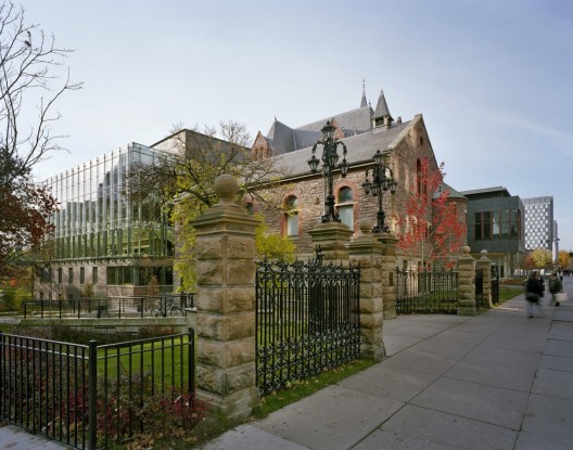 新建成的TELUS表演學習中心是一個整體規劃項目的最后一部,這個整體規劃項目是為加拿大最優秀最頂尖的音樂和藝術教育機構,即皇家音樂學院設計的。設計在歷史和新建筑之間的空間內創造了一個由自然光照亮的人行空間,它連接布盧爾街通向演奏廳和大廳的入口。玻璃和鋼鐵新加結構與古老的歷史建筑表皮形成明顯的反差。