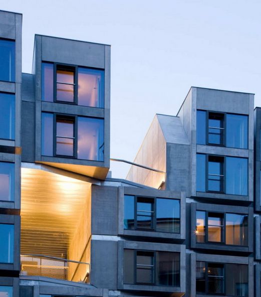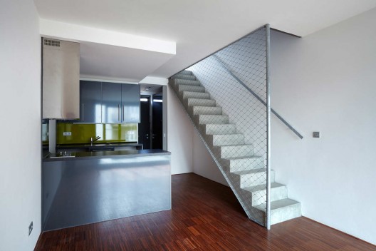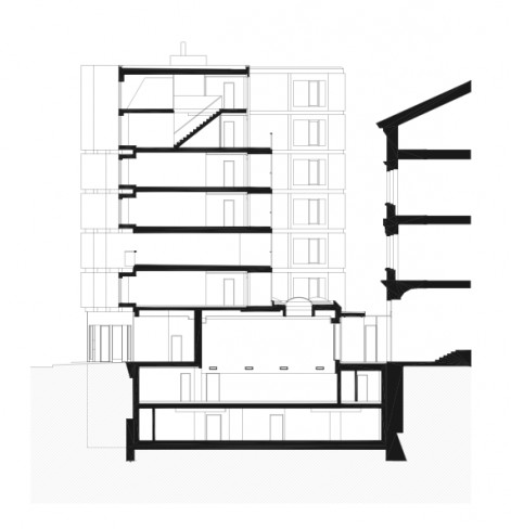 這個項目的整體設計采用包含著空間單元的磚盒子結(jié)構。由大廳定義的垂直樓梯的位置規(guī)劃了整體空間,呈現(xiàn)出一個開闊的水平走廊。項目中樓層之間有被夾住的體量,它們的面積與公寓單元相呼應。為了與附近建筑一致,為了保證自然光和空氣的良好吸收,為了打開一個傳統(tǒng)的空間滿足人們的交流需要,項目立面上一部分磚塊被打開移走,形成了獨特的開口。