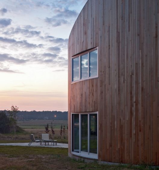 這個住宅位于波蘭郊區(qū),它呈現(xiàn)出一個圓形的形式,這種形狀適合于任何形式的場地環(huán)境,屋頂?shù)撵`活形式也比較容易滿足不同的景觀條件,室內(nèi)的布置也是充滿多樣性,以滿足住戶的所有要求。可持續(xù)是這個設(shè)計的重要元素,設(shè)計通過自然建造材料的運(yùn)用,可回收能源的利用等很好地尊重了自然環(huán)境。預(yù)制的木質(zhì)結(jié)構(gòu)也節(jié)省了建造的耗費(fèi),同時保證了良好的質(zhì)量。