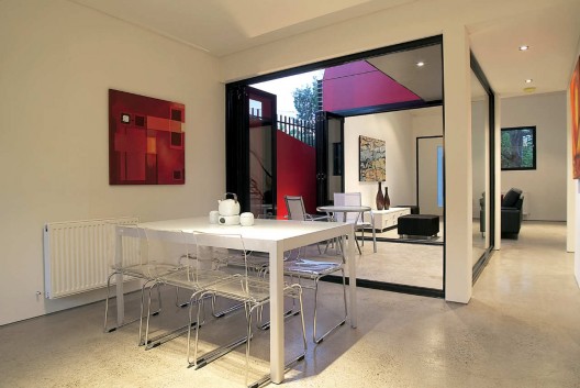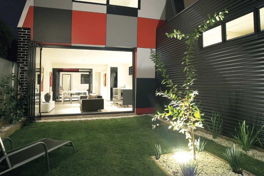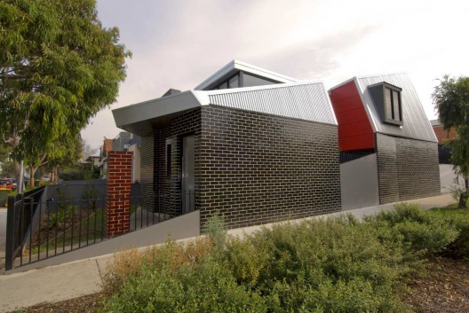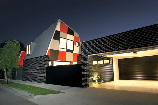 這個住宅是對郊區(qū)鄉(xiāng)村住宅和地區(qū)規(guī)劃法案的一種回應(yīng),它是努力在提供一種廉價的住宅形式,挑戰(zhàn)傳統(tǒng)的歐式郊區(qū)住宅形式。項目的目標(biāo)不是為了彰顯事務(wù)所對地區(qū)問題和建筑文化問題的獨(dú)立看法,而僅僅是想通過有效簡單的標(biāo)準(zhǔn)型建筑方法創(chuàng)造出不一樣的可能。因此設(shè)計采用了磚,涂漆的壓制板面,彩色的帶狀屋頂和覆蓋,石膏板等等。