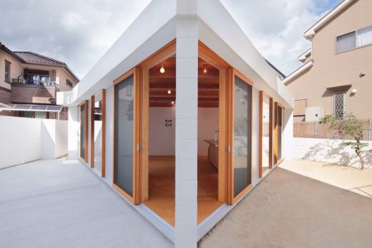這個項目的客戶想要一個充滿陽光的單層住宅,還要有良好的通風。由于場地的限制,設計師選擇采用“借墻”的方式,以最大限度地利用場地,將劣勢轉為優勢。融合美麗的景觀是“借墻”策略的普遍方法,這個設計將鄰居家的一個普通混凝土墻壁借來,設計師首先將場地分為好幾個不同的部分,形成十字形狀,其次將一個屋頂放在這個借來墻壁的上面。最后所有的房間都能看見自己住宅的墻壁和鄰家的墻壁,總之就是鄰家的墻壁被成功借用,如同自家的一般。