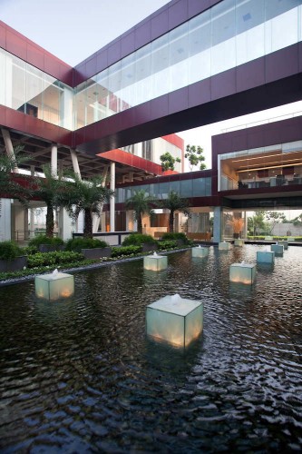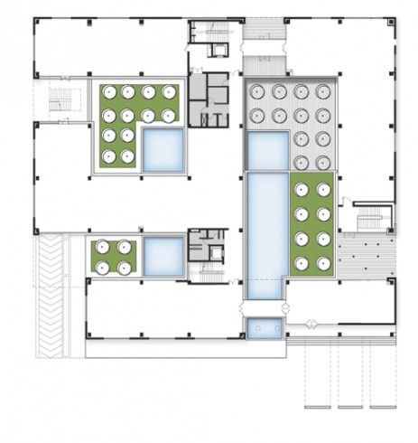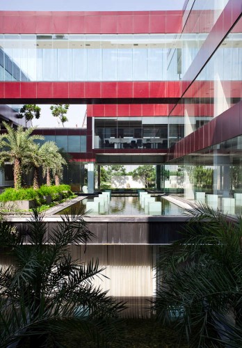 建筑位于一個背景不突出的郊區地段,項目的發展生成出一個內向型的策略,它強調的是環境,社會和經濟等問題。設計包含一個獨特的堆砌系統,這樣的排布生成出更加多樣的開闊空間,如院落,涼亭,露臺,綠色屋頂等等,同時它能幫助辦公空間的結構形成。一個中心的脊梁橫跨建成的體量,形成一個公共的區域,其他的部門則向外分散。設計的理念力量來自空間的組織,室內和室外,不同的項目元素之間都有互相重疊的空間,它們共同營造出生動的工作環境。