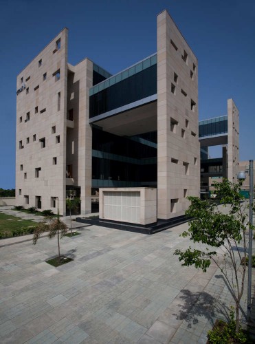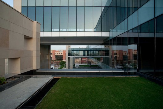 這是一個(gè)位于印度古爾岡的辦公綜合體,建筑與傳統(tǒng)的辦公形式不同,它包括互相交織的開(kāi)闊公共空間以及封閉的辦公空間。設(shè)計(jì)將商業(yè)中心的實(shí)用性需求和環(huán)境方面的考慮相結(jié)合,包括兩種非正式的空間,它們分別位于公共層和私人辦公層。首層包括娛樂(lè)和非正式會(huì)議區(qū),同時(shí)這個(gè)會(huì)議區(qū)定義大樓的入口。被動(dòng)節(jié)能策略被應(yīng)用于建筑設(shè)計(jì)當(dāng)中,以創(chuàng)造出不需要空調(diào)的舒適空間。