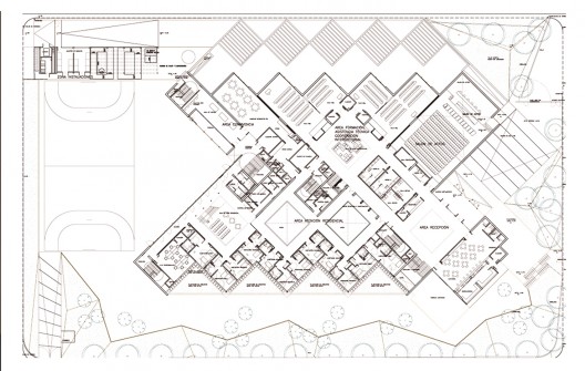 場地的城市條件是設計的基礎,并最終形成一個相對獨立的城市系統,它有著嚴格的北部朝向,同時建筑免受噪音和直接視角的影響。建筑的緊湊性通過它的多孔性,光亮感和室內的流暢感展示出來。中心的研究和學術性特征通過嚴謹的結構系統,度量和材料的精準展示出來。這個建筑為人們提供不同的服務,包括一個為二十人準備的理療區,一個研究實驗室,教室,管理辦公室和大禮堂。