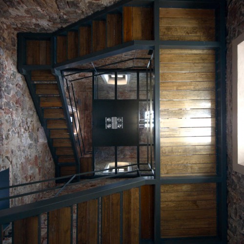 這個項目是將一個十六世紀(jì)的住宅改為一個新的學(xué)院中心,場地位于西班牙Parets del Vallès,周圍被一群新的工廠環(huán)繞,是附近鄉(xiāng)村為數(shù)不多的幾個遺址之一。在翻修之前建筑已被遺棄,并有坍塌隱患。之前的一系列翻修和擴(kuò)建已經(jīng)改變了建筑的原有風(fēng)貌,使之處于一種絕望的狀態(tài)。這個項目是對原有建筑的一次質(zhì)量提升,一方面提升和恢復(fù)歷史價值,另一方面設(shè)計通過兩個視覺軸線和自然光的引入將空間清晰化,改變原來黑暗混亂的狀態(tài)。