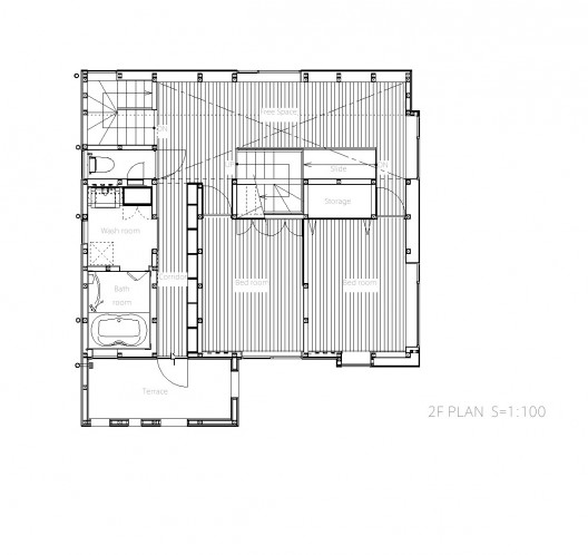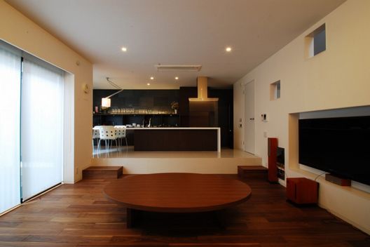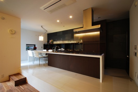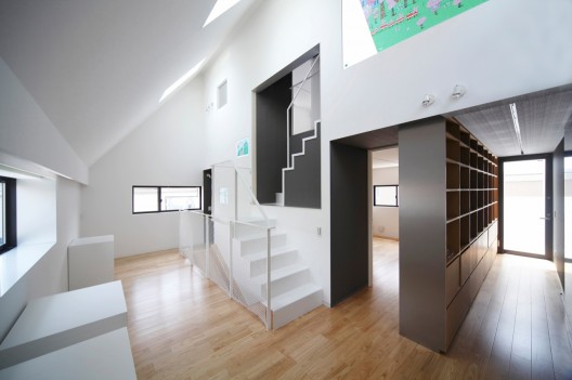 客戶需要首層空間適合朋友聚會和家庭聚會,另外客戶需要另一個起居空間,供小孩子玩耍。首層的餐廳廚房起居空間都以日式房間風格設計。通過創造出不同的條件,如可移動桌子,墻壁上的壁龕,通向一樓的滑梯,二樓起居空間搖身一變成為孩子們的圖書館,畫廊和游戲空間。