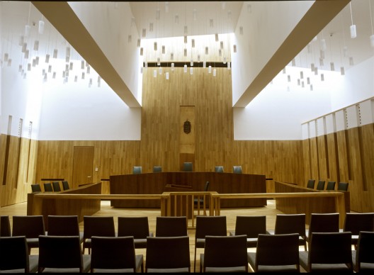 建造后建筑的主要入口被移到了北部的入口橋,首層包括登記室,車庫和機械工程室。斜坡的插入使建筑能夠供不同的訪客接近。建筑體量主要包含四個獨立的立方體,呈現(xiàn)出一種封閉內(nèi)斂的特性,不規(guī)則的窗戶和天窗布置又柔化了整體氣氛。北部和西部分布窗戶開口,天窗打破五層樓頂,為法院內(nèi)部帶來自然光線。表皮覆蓋的是Kanfanar石材,在低矮拱形屋頂表面設計師采用的是干干的石材,它們呈現(xiàn)出不連續(xù)性。法院兩個結(jié)構(gòu)之間是由玻璃的橋結(jié)構(gòu)相連。東側(cè)的墻壁上,封閉的石頭塊被連成一體,上面覆蓋礦邊石。