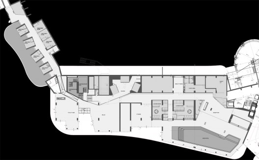 這個水療空間位于克羅地亞的羅維尼,是Lone酒店的一部分,這個酒店是克羅地亞第一家設計類酒店。水療行業的發展已席卷整個克羅地亞,這也為這個項目的生成提供了條件和基礎。酒店呈現出的極簡主義美感使設計師創造了一個當代的自然的水療環境,這里的空間設計突出極端的娛樂和舒適感,同時呈現出一種藝術的氣息。整個水療區被認為是一個空間連續體,它連接不同的功能,包括室內泳池,健身房,桑拿中心,水按摩泳池和治療室等。設計中還包含一個走廊,人們可以在這里休息,或是在長長的彩色墻壁旁享受顏色療法,或只是經過時享受室外的景色。