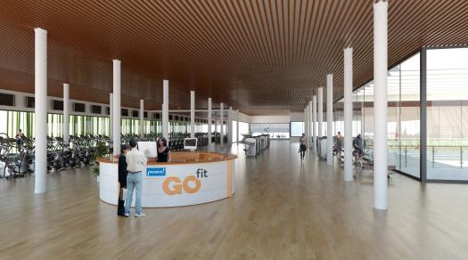 這個體育場館由ABM事務所設計,占據一個之前的老體育館場地,之前的場館包括當地著名的田徑館和一系列補充性的體育設施。新館所在場地是一個很獨特的場地,它由一個綠樹覆蓋的斜坡定義,這個斜坡比附近的公路高一些,這造成建筑的大部分都被埋在斜坡下。這種策略使自然綠色斜坡成為城市網絡的一個重要組成部分。建筑沒有被覆蓋的那部分則顯得不是很高。暴露出來的體量被一層環繞建筑的皮膚包裹,它用鋼管做成,仿效森林的感覺,使建筑與周圍樹林合為一體。所有這些元素都使建筑顯得低調謙虛,與環境和諧一致。建筑不僅僅關心內部使用者的需求,還建立起了與外界強烈的聯系。