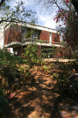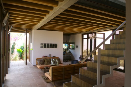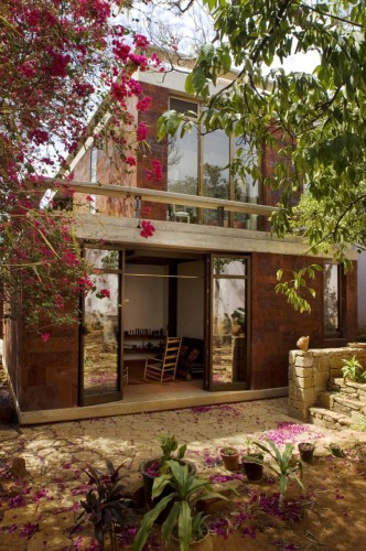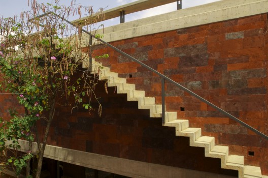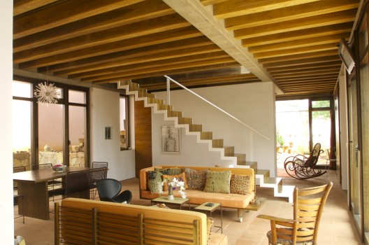 這個住宅和工作室是為一個塑料藝術家設計的,它由兩個同樣大小的體量組成,客戶想要在二樓的工作室處安插一個陽臺。這個想法啟發設計師創造出兩個相互堆積且錯落的建筑,低層的樓頂將成為高層的陽臺。一個內置的樓梯成了兩者之間的連接和轉折。住宅位于一個不規則的場地內,與場地較短一側相連,從而創造出一個開闊的花園空間,為朝北的工作室和朝西的早餐室提供良好的照明和光線,住宅本身就像一個窗簾,保護陽臺免受陽光暴曬。