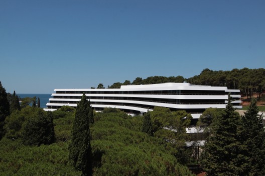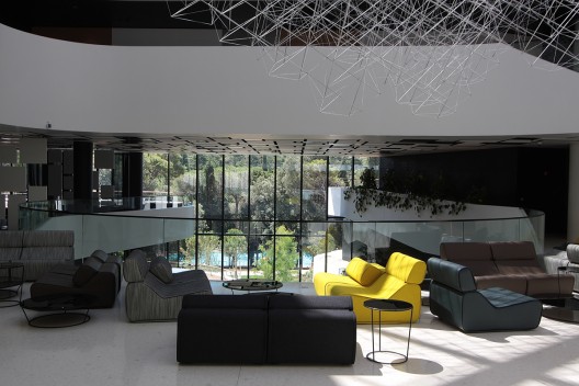這是一個由很多著名克羅地亞建筑師,藝術家,產品、時尚、和平面設計師共同設計完成的酒店,也是克羅地亞第一家設計型酒店,位于穆里尼山森林公園。這個公園是羅維尼最吸引人的旅游地之一,緊鄰傳奇的易登酒店和新建的穆里尼山酒店。周圍環境和公園空間安靜怡人,是Lone海灣穆里尼山森林安全的地帶。設計旨在將這一空間打造成一個有意思且頗具功能感的空間,來自3LHD的建筑師負責酒店大樓的設計和建造。除了整體建筑,室內和家具也都是量身設計,以實現一種獨特的可辨識的身份認證。酒店包括236個房間,12個套房。其中16個房間在陽臺設有私人的按摩池。房間功能多樣,能滿足不同人群的需要。帶有國王床,成對床或是相互連接房間的套房適合家庭。酒店有三個餐廳,它們分別是“L”,“ON”,“E”;兩個酒吧,一個爵士俱樂部和一個迷你俱樂部。