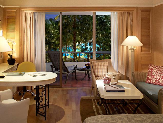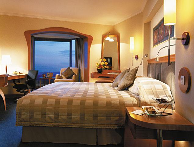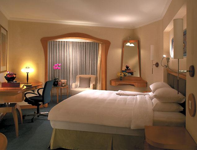 酒店有750間豪華的客房與套房,分布于三座風格各異的翼樓之中:現代化的高塔翼(Tower Wing)、充滿熱帶風情的花園翼(GardenWing)及凸顯尊貴的峽谷翼(Valley Wing)。酒店賓客可享用寧靜的花園,大型不規則游泳池和世界一流的餐廳;還享有在附近的新加坡盛貿飯店和位于圣淘沙島上的香格里拉新加坡圣淘沙度假酒店簽單的待遇。