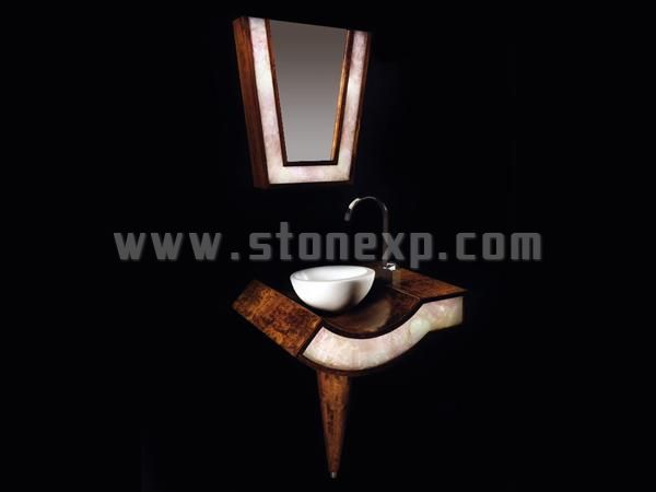 用超白玻璃和大理石做成的洗手盆