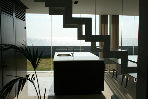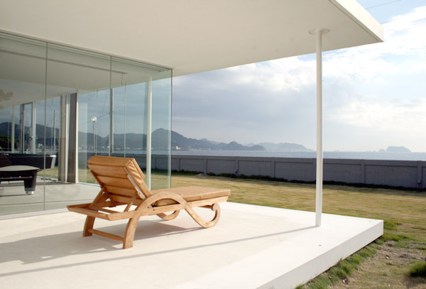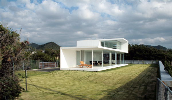 House in Minami Boso是坐落在日本Peniula半島南邊海岸的一座私人別墅,面向著一望無際的太平洋。白色的House in Minami Boso遠看就像由一塊板折疊而成,這樣的設計不僅簡潔大方,而且也使建筑的上下兩層都能透過落地玻璃窗門得到全視覺的海景享受。在這樣的別墅里面觀賞海上的日出日落,簡直是視覺享受的一種極致,難怪房子的主人愿意住在這距離東京市中心2小時車程的地方。