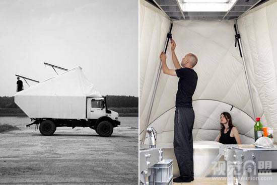 如果房子可以移動(dòng),那么我們不是能夠真的如隱士一般云游四海了?這絕不是虛構(gòu)出來(lái)的幻境。Unimog是梅塞德斯-奔馳生產(chǎn)出來(lái)的一部大型的卡車。
