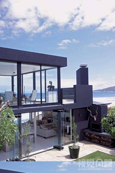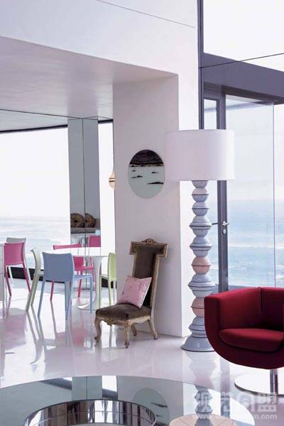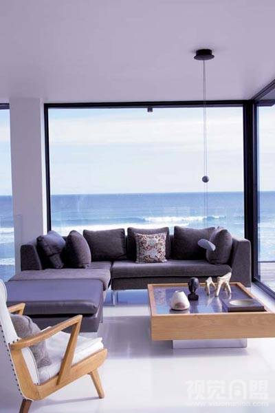 對(duì)于大自然,我們可以無(wú)限接近,卻已經(jīng)無(wú)法抵達(dá)。在這間海角玻璃屋里,不可或缺的鋼鐵架構(gòu),色彩斑斕的玻璃器皿,艷麗抽象的裝飾畫(huà),書(shū)架上豎著一排排現(xiàn)代工業(yè)制造出來(lái)的書(shū)籍,一切都在無(wú)聲無(wú)息中表明,他們是由摩登都市里脫逃出來(lái)的現(xiàn)代人。而書(shū)桌上必不可少的筆記本電腦,更是在不經(jīng)意間提示著房屋主人不可逃離的社會(huì)角色。