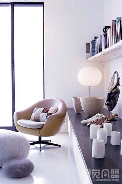 成功在于細(xì)節(jié)。Julian和Trevyn把他們“回歸自然”的設(shè)計(jì)理念貫徹到了每個(gè)角落,他們盡可能地使用自然材質(zhì)裝飾空間。除此之外,用純木制的墻板來(lái)間隔室內(nèi)空間,加上比比皆是的原色原木家具,無(wú)一不閃爍著“貼近自然、回歸自然”的純樸思想。至于那些書(shū)桌上散落的小小石子,最大限度地將設(shè)計(jì)思想擴(kuò)展到整棟房子。