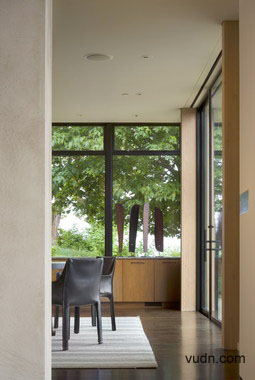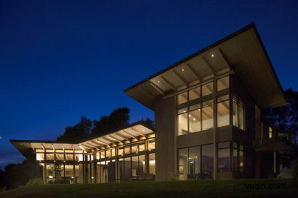 別墅的設計利用了木頭與玻璃之間的關系,表現在玻璃與玻璃之間似乎消失了的墻壁,天花板與玻璃之間的無縫連接。