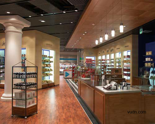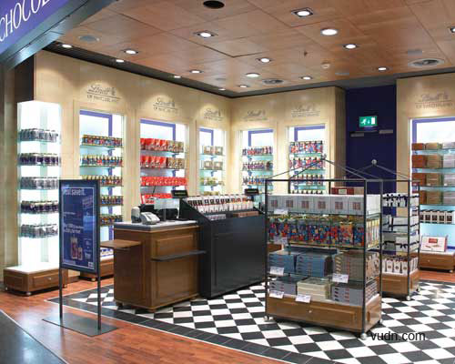 Detail Design公司提供了這個(gè)巧克力店設(shè)計(jì),設(shè)計(jì)的目標(biāo)是讓游客們有一種來到巧克力世界的感覺。店中包括巧克力和果仁糖展覽臺(tái)和一個(gè)特殊的品嘗環(huán)境。該特殊的品嘗環(huán)境是巧克力師傅進(jìn)行他們的巧克力藝術(shù)創(chuàng)作的空間。