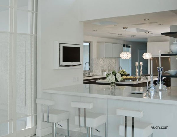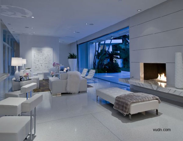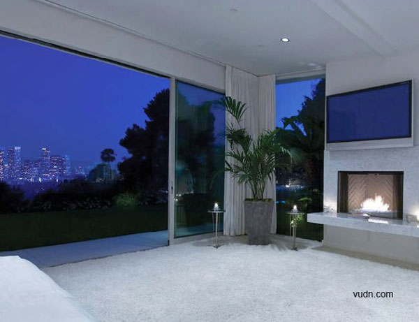 別墅位于加利福尼亞州Beverly莊園的山頂,并且剛剛進行過現代風格的翻修。別墅共分為室內外兩個區域,室內區域的開放空間包括餐廳,客廳,廚房等,并通過墻面上的玻璃門與戶外彼此開放,同時還包括主人套房,以及豪華的大理石浴室和雙廁。別墅的外部區域則設有巨大的草坪,花園,游泳池,露天陽臺和令人驚嘆的世紀城市全景等。