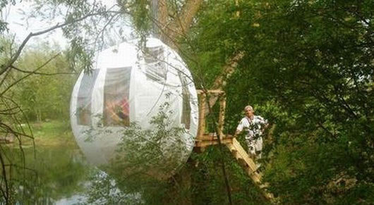 樹屋是休閑、閱讀、沉思或與家人一同玩樂的非常好的地方。它可以設置在你的花園或你的后院中,在這里你可以看到住宅周圍的樹林,山脈或者沙灘的美景。這是一個環保型的樹屋,由BuleTree公司設計建造。建造所用的材料并不會影響樹的自然生長。它可以提供一個時尚的生活環境,對那些自然熱愛者和喜歡捕獲奇異物種的人們非常具有吸引力。這個BuleTree住宅有6平方米可以容納8個人。這種氣泡式的設計可以允許人們在樹上睡覺,精心并同自然親近。
