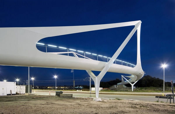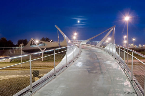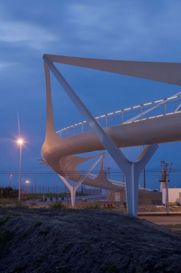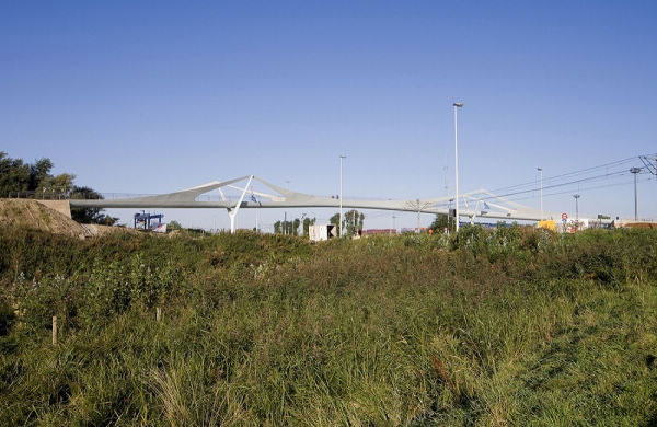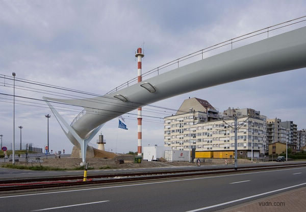 這座步行橋位于伊麗莎班女王大街,它并連接克洛克與奧斯坦德。它有兩個功能:一方面,坐落于堤圍澤地上的橋把海堤與綠化帶連結起來,腳踏車愛好者和行人得以觀光。另一方面,橋標志出海濱城市克洛克-海斯特的入口。橋的靜態模型是一道102米長,橫臥于四個支撐點上的連續橫梁,使跨度處于28m/46m/28m的比較理想狀態。