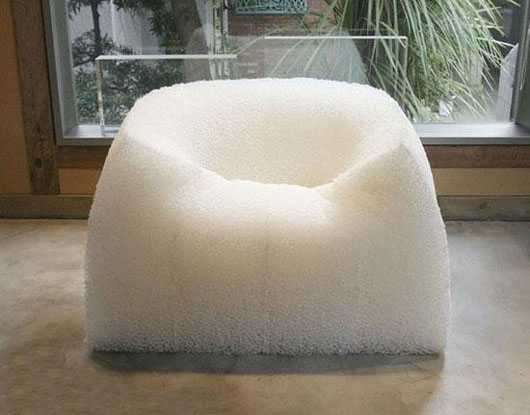 TokujiYoshioka的Pane椅。Pane在意大利語中就是“面包”的意思。Pane椅使用的是一種透明的海綿狀材料,叫作polyesterelastomer,一種熱塑性聚酯彈性體(TPEE)又稱聚酯橡膠,TPEE兼具橡膠優良的彈性和熱塑性塑料的易加工性,軟硬度可調,設計自由,是熱塑性彈性體中倍受關注的新品種。