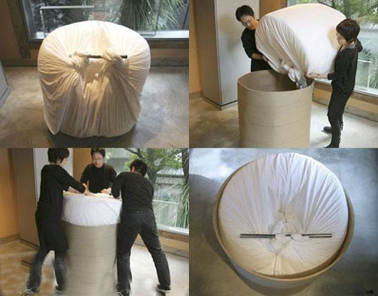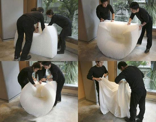 TokujiYoshioka的這個設計起源自3年前,他在翻閱《國家地理雜志》(NationalGeographic)時候,對纖維和紡織品產生了興趣,特別著迷于纖維結構,除了柔軟,它有很好的結構性能,比如吸收外力,通風等,無數的小單元形成強大的一個整體。TokujiYoshioka就獨自一人開始研究和體驗這種材料,因為他認為這樣在發展階段他有足夠多的自由,TokujiYoshioka說當他要開始設計外形的時候,這個設計就差不多完成了,他喜歡自主以及偶然的形式?那種超出意識之外的美。