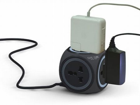 這款插座帶有六個插口,分別安置在正方體的各個面上。如此一來,各個插座的工作也就互不影響,不會因為某個電器插頭過于龐大而剝削了臨近插頭的空間,讓其他電器難以接通電源。
