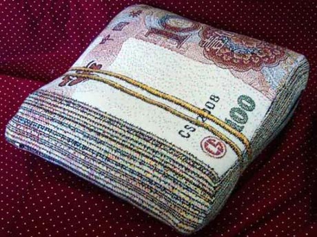 無論如何我們不能否認錢在現實生活中的作用。也有不少人夢想數錢數到手抽筋,睡覺睡到自然醒。那么能不能變換一下,讓你睜著眼跟錢抱在一起,做夢也跟錢抱在一起呢?那紅色鈔票是那么的誘人那么的熟悉,而又那么的不夠用。哈,這就是百元鈔票抱枕的創意了。沒啥技術含量,只是在人性上稍加挑撥,不由得咱們不垂涎三尺!小編我真的好想要一個,不是拜金主義而是手上抱著,心理就是有一種格外的舒服、滿足、踏實。相信您能理解我這個小人物的感受吧……哈哈,哪位朋友發現有賣這百元鈔票抱枕的趕緊告訴我們啊。