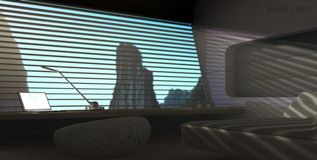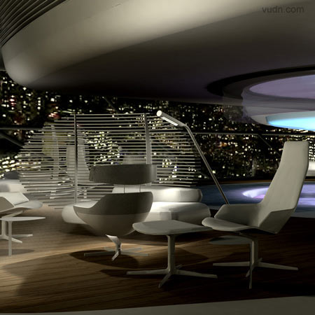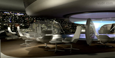 載人飛艇室內設計。將包括一間餐廳,一間圖書館,一間健身套房和浴室。