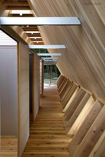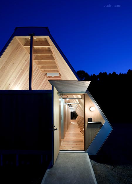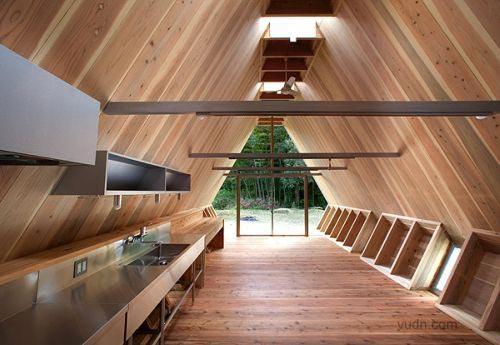 小木頭房子是專為老夫婦坐落在鄉村的房屋設計。設計的目的是有限的成本要創造最大容積,并房屋與周圍的環境融合。因為該地區是著名的雪松木材生產地,決定用厚厚的杉木板的作為結構,這是可以達到比較低的成本和高的品質。