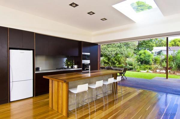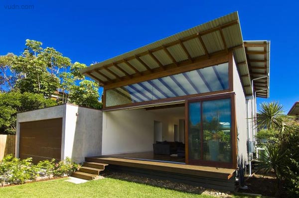 位于澳大利亞悉尼北一個海濱郊區, 高的天花板,百葉窗和雙向折疊玻璃營造公開,又不損害個人隱私的窗戶。膠木制地板,中央空調控制溫度,可再生木材,不銹鋼此材質為主的設備齊全的廚房和石材裝飾制成的浴室,整個開放的生活和休閑區,一個室外花園。主題是中性色調。為喜歡在海灘邊的家庭提供最多的生活方式與完善的保障。