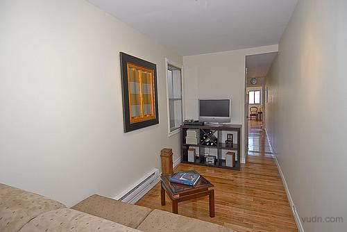 在小小的房子客廳里,從后面的庭院走向前門。