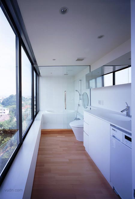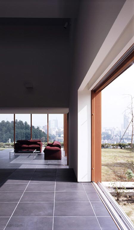 別墅坐在山頂俯瞰仙臺市,在懸崖上崛起為該地區提供壯麗的景觀。周邊有關房屋規劃構思的密度構成的細長型建筑和大型花園相連。要考慮到北部吹頻繁的強風,空調地板輻射采暖是適用于整個樓面面積,在1樓大房間,空調取暖是還提供了對每個房間的墻壁,創造舒適的空間與取暖。