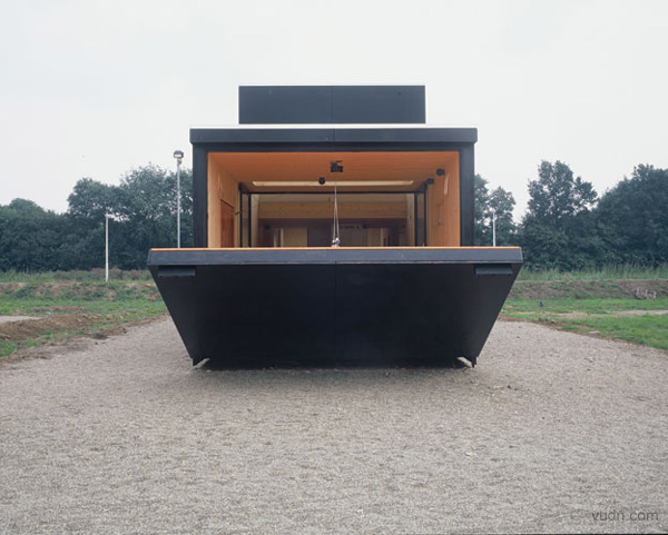 國際藝術(shù)家將被邀請居留和工作,從不同的角度觀察和反應(yīng)日益增長和瞬息萬變的地方,為這些藝術(shù)家提供住宿和工作室。簡單的空間主要在于提供了一種實用的和負(fù)擔(dān)得起的住宿地點(diǎn)。人們會期望有一個移動的家,它的流動性建設(shè)是強(qiáng)勁和持久的。它是一個長期的空間,可劃分不同的內(nèi)部和外部空間。它的房子被用于許多方面:作為一個客房,一間畫室或一個好客的住家。 建造該物體很簡單:墻壁,地板和屋頂已完全被制成固體,針葉樹做成的木板,由兩個鋼架穩(wěn)定。容易運(yùn)輸,堅固,沉重和無害于環(huán)境。其尺寸符合公共道路運(yùn)輸許可。在運(yùn)送過程中,可以是完全封閉起來。當(dāng)房屋大門打開了得到一個完全不同的結(jié)構(gòu),變成梯田,坡道和平臺。