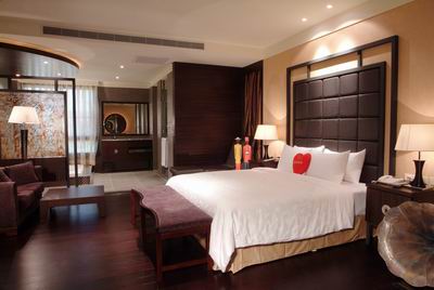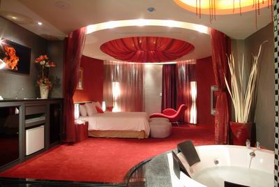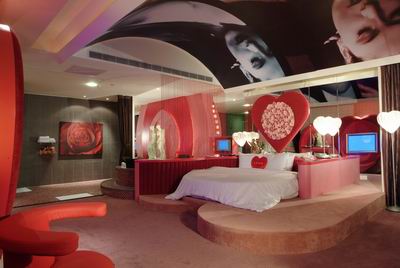 傳統的大紅色透露著愛的氣味,而天花版的人物畫又不失時尚。