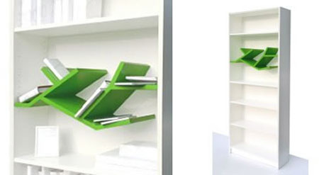 向來規矩的書架上加上一點凌亂的元素,既實用又美觀。