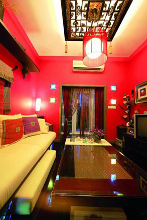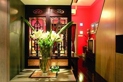 屏風:濃墨重彩的屏風,極富女性氣質(zhì)。誰曾想以前它們只是掛在墻上的裝飾,現(xiàn)在卻起到隔斷空間的大用處。一張小案,方便主人回來隨手放下鑰匙、皮包。