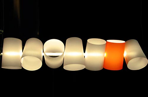 意大利設計師giulioiacchetti在一根長長的熒光燈管上加入了7個燈罩,每個燈罩還可以在燈管上自由旋轉,從而將光源聚集在你所需要的方向。再搭配彩色的燈罩后,整體看起來更具活力,非常夢幻。