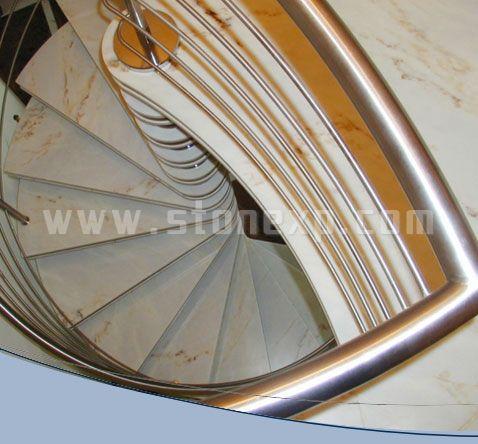 以下一組石材的旋轉樓梯,其造型極富創意,石材的加工難度較高,天然石材自然的光澤與顏色與周圍環境完美統一,精妙的設計也讓贊嘆不已。