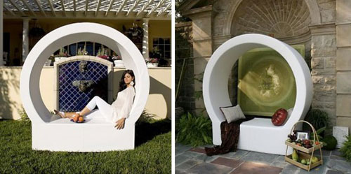 飛機(jī)吊艙式的躺椅帶給您體驗(yàn)隱居于保護(hù)性的圓形框架里的感受,它不僅持久耐用而且有奢華感。