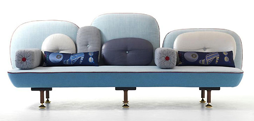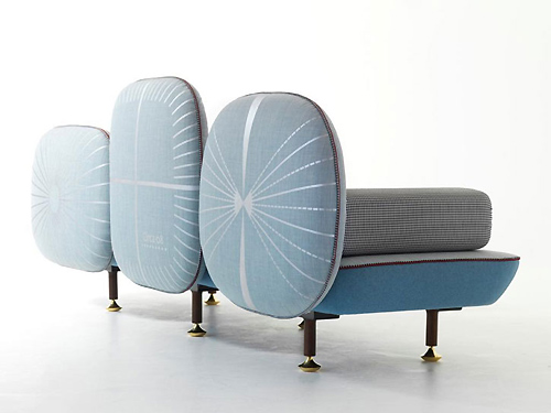 這款創(chuàng)意沙發(fā),它是由一般在沙發(fā)上常見的抱枕、靠墊等物品構成,打破了傳梳設計的思路,設計簡潔隨意,但又不失平衡美感。