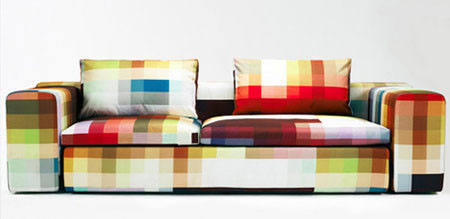 這款沙發(fā)的外套同樣采用了大顆粒的彩色像素來著色。家里擺上這樣的沙發(fā),客人們恐怕都會眼暈的哦。