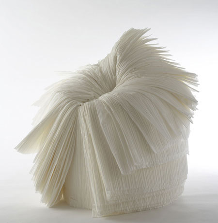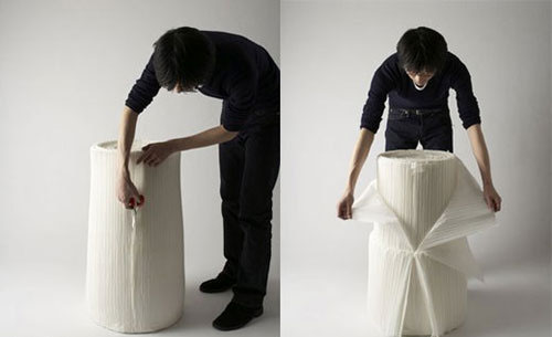 這是一款由日本設計師設計的古怪沙發(fā)。它將廢紙經過加工變成了這種褶皺的樣式,然后將它們捆扎成了這樣一個圓柱體,而你只要用刀子將它垂直的切開一條縫,即可根據(jù)自己的需要將它撕成自己想要的形狀了。