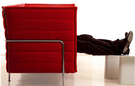 這是一款非常適合在公共場所使用的沙發(fā)。它表面看來跟普通的沙發(fā)沒有什么兩樣,但是它的靠背卻可以被伸展并直立起來從而形成一個屏風。這樣一來,當你需要相對私密的空間時,它就可以滿足你的需求。而平時則可以折疊起來,就像普通的沙發(fā)一樣。