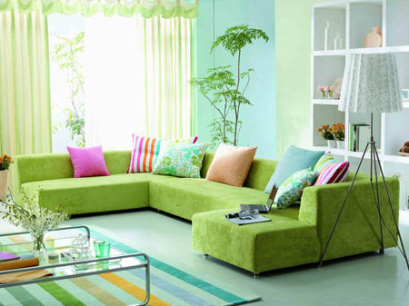 綠色是健康向上、充滿活力的色彩,它既能消除人們緊張工作后的疲勞與壓力,又能讓情緒放松、穩定。綠色一般與白色、黃色、藍色等顏色比較相配。適用于室內裝飾的綠色是溫和、色度較淺的嫩綠。當你在生活中需要依賴家的滋潤而減壓時,可以嘗試在臥室或客廳內采用綠色。