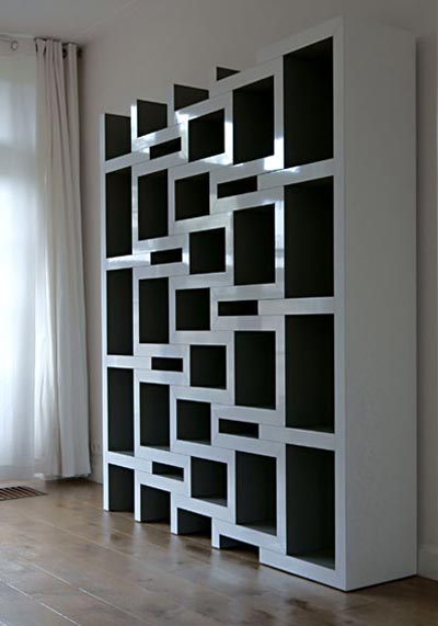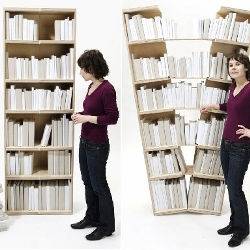 它是由多個相互嵌套的木頭格子組合而成的,完全收縮起來時,就像是一個整體,而當你需要空間存放書籍的時候則可以將它抽拉開來,露出空隙,即可像傳統書架一樣使用。