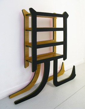 這是一款以繁體字“?”的字形為模板制作而成的架子。由于“?”字古同“現”,因此這款架子可以表示“展現”的意思。