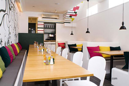 核心提示:Lifeforms設計了這樣一個1800平方?盞牟吞??褂孟執(zhí)??a target=_blank>材料和明亮的色彩作為餐廳的調(diào)色板,以兼收并蓄思想來表現(xiàn)出地中海在內(nèi)的地區(qū)的一種傳統(tǒng)本質。